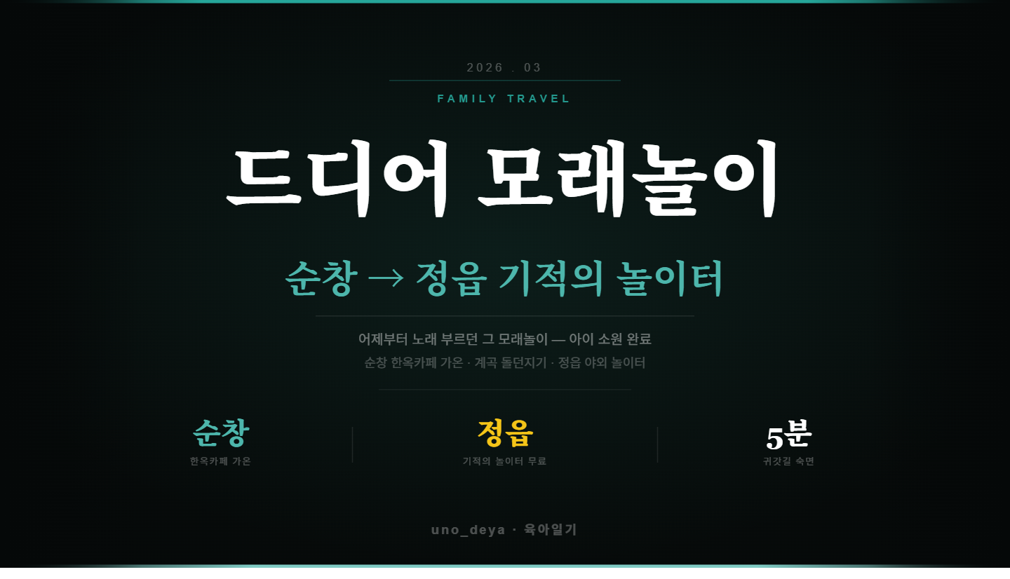 위치: 전북 정읍시 연지동 (기적의 놀이터 정읍) 이용료: 무료 특징: 야외 모래놀이터 + 다양한 놀이기구 / 주말 주차 혼잡 주의 추천 대상: 모래놀이 처음 경험시키고 싶은 유아 가족