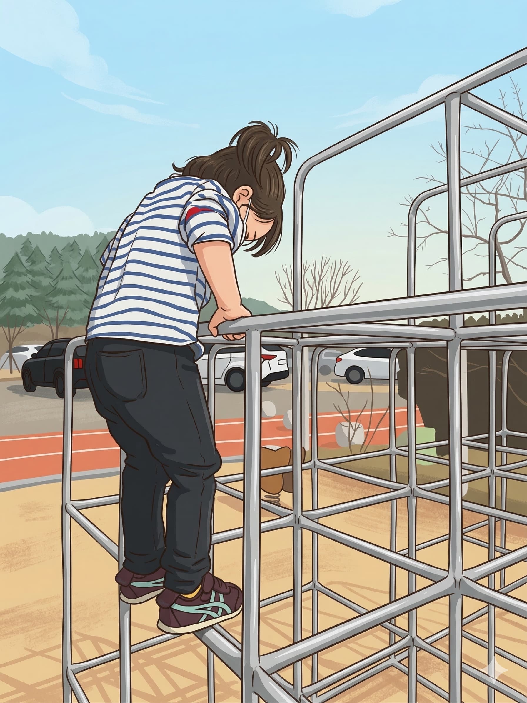 모래놀이를 실컷 하고 나서 이번엔 미끄럼틀로 이동했다. 와이프랑 나는 번갈아가며 아이 곁을 지켰다. 4살이 혼자서 뛰어다니기엔 아직 주변이 너무 넓고, 언니 오빠들이 너무 빠르다. 다칠까봐 눈을 뗄 수가 없었다.
